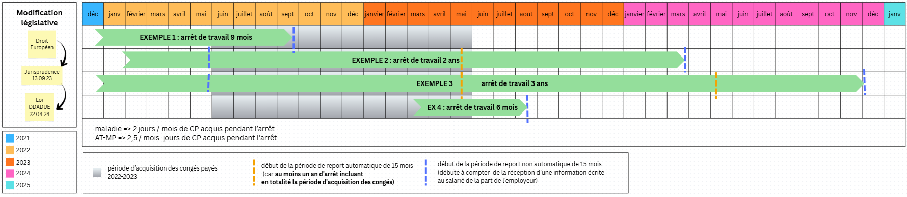 Dans notre exemple n°3, l’employeur devra distinguer 3 modalités d’acquisition de congés :